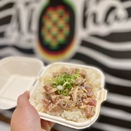 The best meal we had during our most recent trip to Hawaii !! We decided to have a snack before our last dinner so I went across the street from where we were staying (The Laylow) and decided to try out a few items on the menu. The Macadamia Aburi Salmon bowl was hands down so delicious. I was so bummed that it was our last full day and we were only now trying this spot. The salmon was perfectly torched and the macadamia nuts provided a nice crunch with every bite. The Garlic Shrimp Hand Roll was also very good. I wish we ate here sooner because I would've loved to try everyone on the menu this trip. I would definitely come back. There was no one in line when I came, but a few people were seated outside finishing up their meal. The woman that took my order was friendly. The place itself is pretty small - there's a drink fridge to the left, a deli looking display in the middle (I'm guessing this holds the onigiri when available) and then the counter where the register is located. No seats inside, just enough space for the counter where you would walk up and place an order. There was a table and seats located outside.